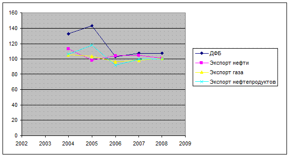 В 2005-2008 годах, с учетом ожидаемого снижения мировых цен на нефть и замедления динамики физического объема экспорта с 7.51% в 2004 году до 4.5-5%, вклад внешнего фактора в рост ВВП уменьшится. Такой темп роста связан с высокими ценами на нефть, которые способствовали дополнительному росту не только стоимостных объемов экспорта, но и доходов населения, торговли и инвестиций в основной капитал. Некоторое замедление роста ВВП, по сравнению с предыдущим годом, обусловлено, прежде всего, значительным снижением темпов роста физических объемов экспорта и сдержанной динамикой роста промышленного производства, даже в условиях исключительно благоприятной внешнеэкономической конъюнктуры. Снижение темпов инфляции в прогнозном периоде будет обеспечиваться комплексом антиинфляционных мер, среди которых: проведение сдержанной тарифной политики в сфере естественных монополий; сдерживание роста цен на нефть и нефтепродукты за счет снижения налоговой нагрузки и повышения уровня конкуренции в сфере реализации нефтепродуктов. С этой целью будут уточнены ставки налога на добычу полезных ископаемых на нефть и ставки акцизов на нефтепродукты. Предполагается активизировать биржевую торговлю нефтепродуктами и стимулировать выход на биржу крупных государственных покупателей; сдерживание роста цен на рынках продовольственных товаров путем развития; проведение консервативной денежной и бюджетной политики.
