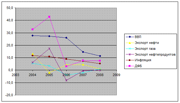 2.2 Сравнительный анализ бюджетных и макроэкономических показателей в 2003-2008гг………………………………………………………………………...24