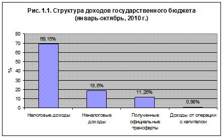 - налоговые поступления, (69,15% - за 2010 год);