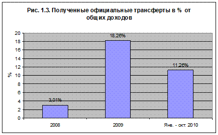 - полученные официальные трансферты (11,26% - за 2010 год);