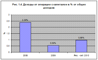 - доходы от операций с капиталом (0,98% - за 2010 год);