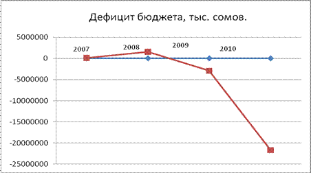 По сравнению с 2009 годом дефицит бюджета в 2010 году вырос на 18775163,7 тыс. сомов.