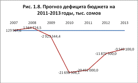 Дефицит бюджета в 2011 году планируется в размере 20 492,0 млн. сом, в 2011 году – 11 872,5 млн. сомов, в 2013 году – 9 549,1 млн. сомов.