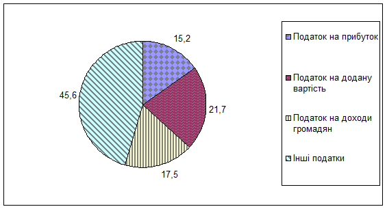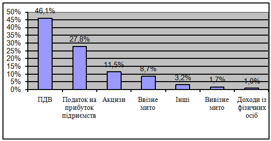 Рисунок 2.2 Питома вага основних податків бюджету України за 2005р.