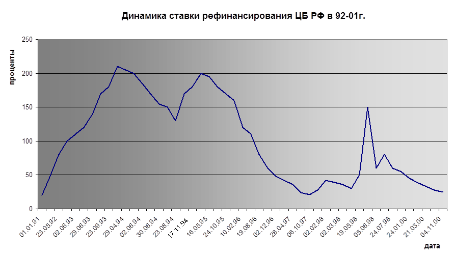 Реферат: Влияние ставки рефинансирования Банка России на экономику Динамика ставки рефинансирования и процентной ставки по кредитам в 1992-2001 годах