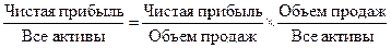 Эта формула раскрывает связь между рентабельностью всех активов, рентабельностью реализации и оборачиваемостью активов. Экономически связь, заключается в том, что формула прямо указывает пути повышения рентабельности при низкой рентабельности продаж необходимо стремиться к ускорению оборота активов.