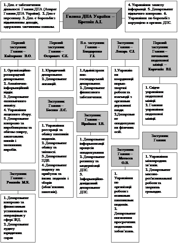 Схема розподілу обов’язків між керівництвом ДПА України