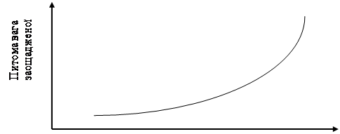 В умовах низьких середньодушових доходів основна їх частина витрачається на споживання. Зі збільшенням доходів збільшується їх частина, спрямована на заощадження. Вона і є джерелом внутрішніх інвестиційних ресурсів. Залежність обсягу інвестицій від питомої ваги заощадженої частини доходів показана на рисунку 1.1 [15].