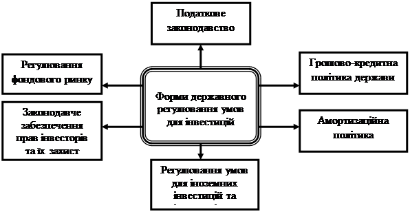 Загальну схему важелів державного регулювання умов інвестиційної діяльності показано на рисунку 1.5 [14].