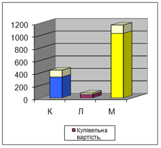 Діаграма реалізаційної вартості товарів за видами