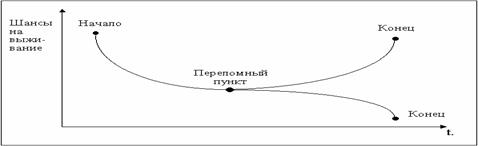 Рис. 1.1. Начало, переломный пункт и конец кризиса на предприятии