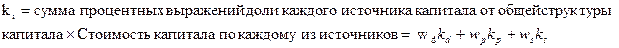 где wd - процент от общего капитала, поступивший от долговых обязательств;