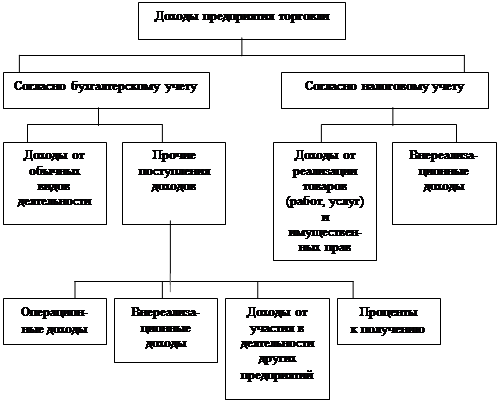 Рис.1.2. Состав доходов предприятия торговли в соответствии с бухгалтерским и налоговым учетом