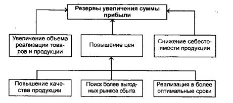 Резервы роста прибыли – это количественно измеримые возможности ее увеличения за счет роста объема реализации продукции, уменьшения затрат на ее производство и реализацию, недопущения внереализационных убытков, совершенствования структуры продукции. Резервы выявляются на стадии планирования и в процессе выполнения планов. Определение резервов роста прибыли базируется на научно обоснованной методике их расчета, мобилизации и реализации. Выделяют три этапа этой работы: аналитический, организационный и функциональный. На первом этапе выявляют и количественно оценивают резервы, на втором разрабатывают комплекс инженерно-технических, организационных, экономических и социальных мероприятий, обеспечивающих использование выявленных резервов; на третьем этапе практически реализуют мероприятия и ведут контроль за их выполнением. В общем виде резервы увеличения прибыли можно представить на рисунке 4.