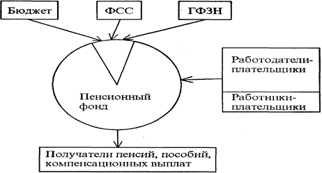 Пенсионная система России функционирует на основе непрерывной финансовой солидарности поколений — работающих граждан с нетрудоспособной частью населения. Такая система пенсионного обеспечения называется распределительной. Она характеризуется тесной зависимостью от демографической и общей экономической ситуации в стране. Например, в настоящее время под воздействием демографического фактора (постарение населения) нагрузка на работающих возрастает. В 1992 г. на 1000 занятых в народном хозяйстве приходилось 450 пенсионеров, состоящих на учете в органах социальной защиты, т.е. без военных пенсионеров. В 1995 г. это соотношение ухудшилось на 13% и составило 554 пенсионера на 1000 работающих. В отдельных регионах это соотношение усугубилось, а в северных, наоборот, снижается из-за миграции населения в центральные и южные регионы России.