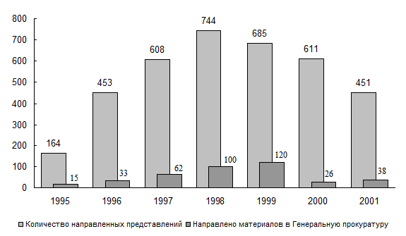 Счетная палата Российской Федерации — единственный государственный орган финансового контроля на федеральном уровне, статус, задачи и порядок деятельности которого определены отдельным законом. Счетная палата Российской Федерации за весь период своей деятельности показала себя как весьма продуктивный орган финансового контроля. Ею было проведено более 1500 контрольных мероприятий, в том числе более 300 в соответствии в соответствии с поручениями палат Федерального Собрания Российской Федерации, запросам и обращениям членов Совета Федерации и депутатов Государственной Думы. По результатам этих контрольных мероприятий было направлено 83 обращения Президенту РФ, 2654 представления и 107 предписаний Правительству РФ и другим государственным органам. [22, с. 1] Убедительные цифры и большая работа, но общество столкнулось с тем, что, зачастую, наказание за грубейшие нарушения, вскрытые Счетной палатой РФ, не наступало.