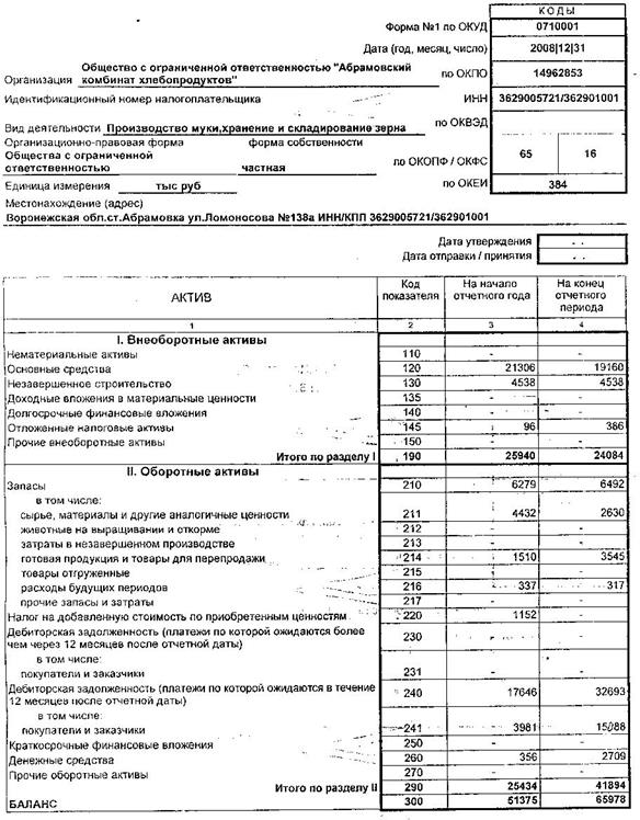 Реферат: Анализ и оценка финансового состояния предприятия (на примере ООО Абрамовский комбинат хлебопродуктов)