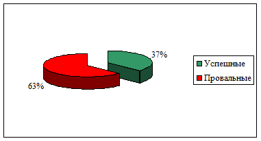 Доли успешных и провальных интервенций за период с января 1997 года по июль 2000 года отражены в диаграмме.