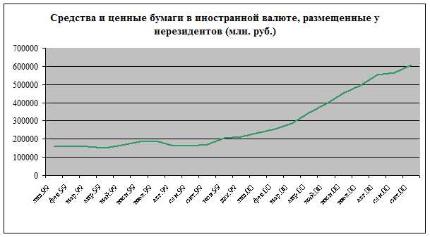 Очень серьезной проблемой остается отток капитала из страны. По сравнению с прошлыми годами он увеличился в полтора раза. Так, за 1999 год было вывезено 18,9 млрд. долларов США. По мнению некоторых исследователей, «бегство» капитала происходит из-за отсутствия в России механизма легализации высоких доходов. Но у этой проблемы есть и другой аспект: во многих случаях наличие вкладов в иностранных банках спасало страны во время финансовых кризисов. Так что, это очень спорный вопрос.