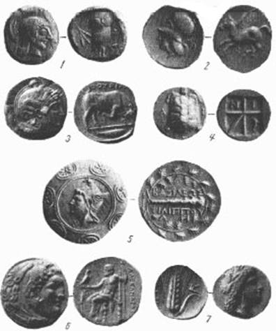 Тысячи монет, круглых и овальных, прямоугольных и квадратных в этой массе монет нам могут встретиться и треугольные деньги Парфии эпохи царей Аршакидов (3в. до нашей эры – 3в. нашей эры) и бесформенные медные лепёшки, чеканенные грузинской царицей Тамарой (конец 12 – начало 13 века); мы столкнемся с удлиненными пластинками, имеющими на концах закругленные фестоны в виде треугольников, - и они окажутся тоже монетами, золотыми монетами английского султана Акбара (1556 – 1605 гг.), и с овальными крошечными серебряными копейками Алексея Михайловича (1645 – 1676 гг.) – царя всея Руси, и с таинственными зазубренными монетами римской республики, и с литыми монетами в форме дельфинов, изготовлявшимися в конце 5 – начале 6 веков до нашей эры в греческой колонии в Северном Причерноморье – Ольвии.