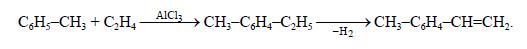 Аналогично этилбензолу, алкилированием толуола производят этилтолуол, а из него дегидрированием – винилтолуол: