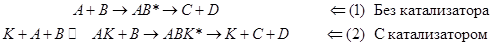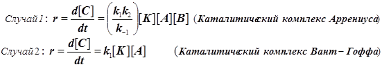 Общая кинетическая схема гомогенного катализа. (см. книгу Ерёмина)