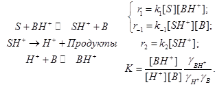 молекуле растворителя: SH+ + H2O = S + H3O+ . Такой механизм называется протолитическим.