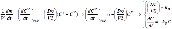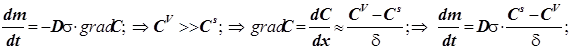 Уравнение массопереноса под влиянием диффузии имеет первый порядок по концентрации. Формально оно не отличается от обычного кинетического уравнения. Диффузия - процесс активационный с относительно небольшой энергией активации - всего около 4-9 кДж/моль.