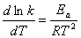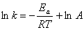 В химической кинетике часто пользуются уравнением Аррениуса в логарифмической форме: