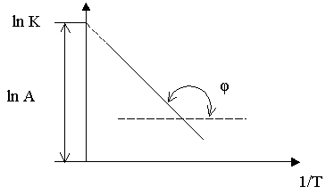 и предэкспотенциальный множитель А по отрезку, отсекаемому прямой на оси ординат, когда 1/Т