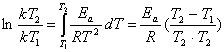Энергию активации можно также найти из уравнения (5.6), проинтегрировав его от Т1 до Т2 :