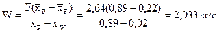 Температура исходной смеси tсм =37,0°С Температура кубового осадка после выхода его из холодильника tхол w =17,0°С Температура дистиллята после выхода его из холодильника tхол p =42,0°С Производительность F= 9,5·10-3 кг/ч или 2,64 кг/с Производительность колонны по дистилляту Р кубовому остатку W определим из уравнений материального баланса колонны: Отсюда находим: