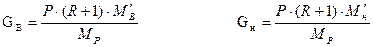 Средние массовые потоки пара в верхней GВ и нижней GН частях колонны: