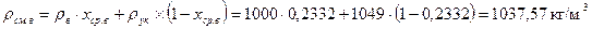 Плотности воды и жидкой уксусной кислоты при температуре смеси близки: rв = rук = 945,6 кг/м3 Плотность физических смесей жидкости подчиняется закону аддитивности: