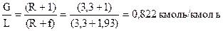 Нагрузки ректификационной колонны по пару и жидкости определяются рабочим флегмовым числом R; его оптимальное значение Rопт можно найти путём технико-экономического расчета. Используют приближенные вычисления, основанные на определении коэффициента избытка флегмы (орошения) b=RRmin . Здесь Rmin - минимальное флегмовое число:
