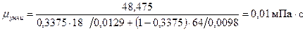где µyв и µyук – вязкость паров воды и уксусной кислоты при средней температуре верхней части колонны, мПа·с; yв – средняя концентрация паров, тогда получим: