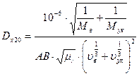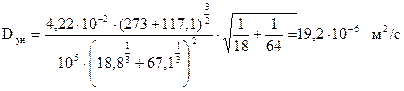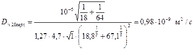 где А, В- коэффициенты, зависящие от свойств растворенного вещества и растворителя, υв , υук – мольные объемы компонентов в жидком состоянии при температуре кипения, см3 /моль, mх - вязкость жидкости при 20°С, мПа∙с. Тогда коэффициент диффузии в жидкости для верхней части колонны при 20 0 С равен: