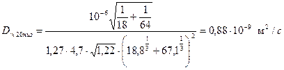 Рассчитаем коэффициент диффузии в жидкости при средней температуре. Dx = Dx 20 ∙[1+b·(t-20)] (1.22) Для верхней части колонны: Dх в =0,98∙10-9 ∙ [1+0,02∙ (102,2-20)]= 2,59∙10-9 м2 /с Для нижней части колонны: Dх н =0,88∙10-9 ∙ [1+0,024∙ (117,1-20)]= 2,93∙10-9 м2 /с Рассчитаем коэффициент диффузии в паровой фазе.