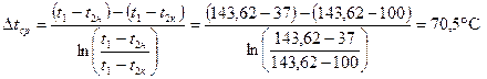 9. Делаем поправку для температуры: Δtср = Δtср лог ·ε = 36,7·1,23 = 45,1°C (2.5.9) 10. Определяем поверхность теплообмена