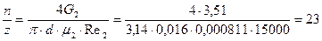 6. Задаваясь числом Re2 = 15000, определим соотношение n /z для конденсатора из труб диаметром dн = 20´2 мм: |