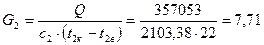t2 = 0,5∙(37+100) = 68,5°C При этой температуре исходная смесь будет иметь следующие физико-химические показатели: c2 = 3222,2 Дж/кг·К - теплоемкость ρ2 = 986,2 кг/м3 - плотность μ2 = 0,000531 Па·с – вязкость λ2 = 0,413 Вт/м·К – теплопроводность Pr2 = 6,5 Для подогрева использовать насыщенный водяной пар давлением 0,4 Мпа. Температура конденсации t1 = 143,62°C. При этой температуре конденсат имеет следующие характеристики: r1 = 2133800 Дж /кг - удельная массовая теплота испарения (конденсации) ρ1 = 924,1 кг/м3 - плотность μ1 = 0,000186 Па·с – вязкость λ1 = 0,686 Вт/м·К – теплопроводность Pr1 =1,17 2. Рассчитаем тепловую нагрузку аппарата: Q= 1,05·G2 ·c2 ·( t2к - t2н ) = 1,05·2,64·3222,2· (100-37) = 562712,12 Вт (2.1) 3. Рассчитаем расход пара для подогрева исходной смеси:
