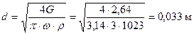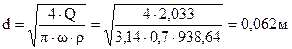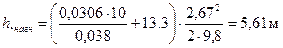 wпн = 2,61 м/с Принемаем рабочую скорость на 30% ниже предельной: wв = 2,47 м/с wн = 1,827 м/с Ориентировочный диаметр колонны определяют из уравнения расхода: