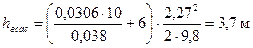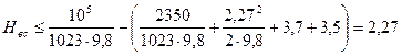 По таблице устанавливаем, что заданной подаче и напору более всего соответствует центробежный насос марки Х20/53, для которого при оптимальных условиях работы Q=5,5·10-3 м3 /с, Н=34,4 м, hн =0,5. Насос обеспечен электродвигателем АО2 -52-2 номинальной мощностью Nн =13 кВт, hдв =0,87. Частота вращения вала n = 48,3 с-1 . 4. Определение предельной высоты всасывания 4.1. Рассчитаем запас напора на кавитацию: hз = 0,3· (Q·n2 )2/3 = 0,3· (0,0264·48,32 )2/3 = 3,5 м (4.1) По таблицам давлений насыщенного пара найдём, что при 20°С pt = 2,34·10-3 Па. Примем, что атмосферное давление равно р1 = 105 Па, а диаметр всасывающего патрубка равен диаметру трубопровода. Тогда по формуле найдём: