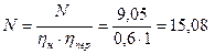 Такой напор при заданной производительности обеспечивается одноступенчатыми центробежными насосами. Учитывая широкое распространение этих насосов в промышленности ввиду достаточно высокого к.п.д., компактности и удобства комбинирования с электродвигателями, выбираем для последующего рассмотрения именно эти насосы. 3.2.Полезную мощность насоса определим по формуле: Nп = r·g·Q·H = 1023·9,8·0,0264· 34,28= 9051 Вт = 9,05 кВт (3.3.2) Примем hпер =1 и hн =0,6 (для центробежного насоса средней производительности), 3.3. Найдём мощность на валу двигателя: