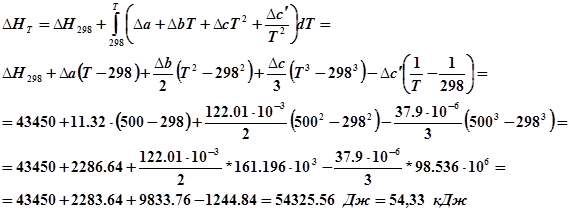 - При стандартной температуре = 298К, а также и при Т = 500К, реакция протекает с поглощением теплоты и носит название эндотермической реакции т.к. ![]()