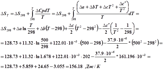 3. Рассчитать изменение энтропии химической реакции при стандартных условиях и при температуре