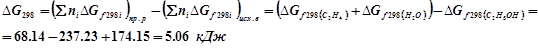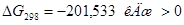- Протекание реакции в прямом направлении при стандартной температуре = 298 К невозможно, реакция протекает в обратном направлении т.к. свободная энергия Гиббса ![]()