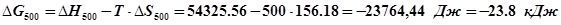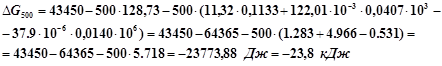 Реакция при температуре = 500 К протекает в прямом направлении т.к. свободная энергия Гиббса ![]()