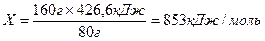 каждые 80 г Fe2 O3 поглощается 426,5 кДж теплоты.