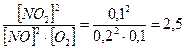 2NO2 установилось при следующих концентрациях участников реак-ции: [NO]=0,2 моль/л; [О2 ]=0,1 моль/л; [NO2 ]=0,1